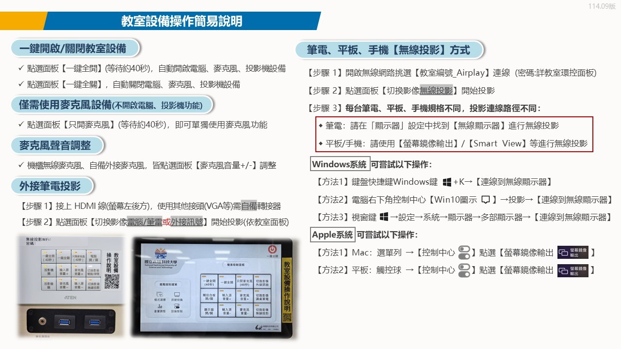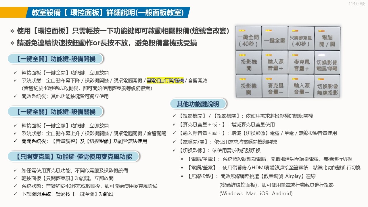 建工校區4樓校屬教室設備使用說明(教室現況如下圖):